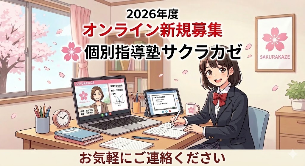 2026年度も引き続き、小学生(小6のみ)、中学生(中1・中2・中3)、高校生(高1・高2・高3)でオンラインの生徒を募集致します。